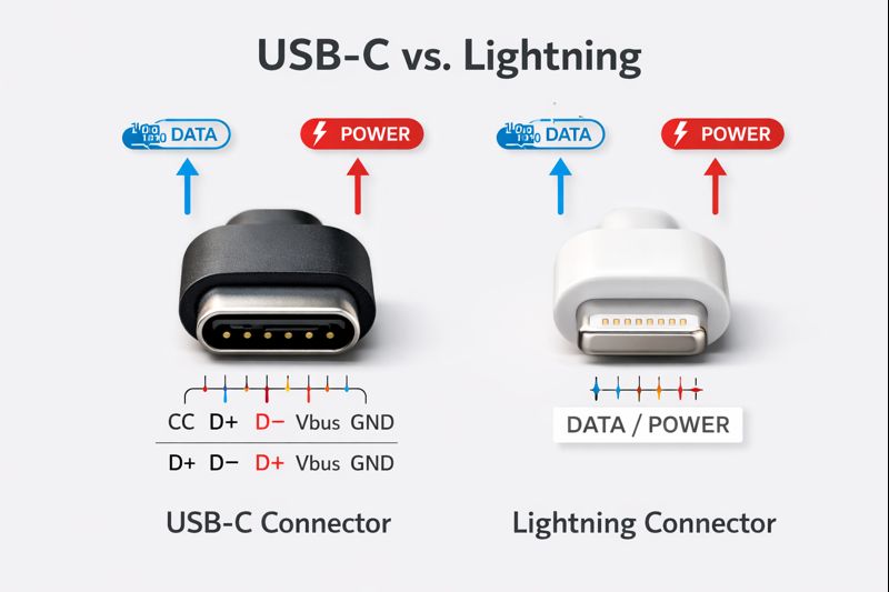 Key SEO keywords: USB-C vs Lightning, USB-C vs Lightning, best cable for phone, phone cable buying guide.