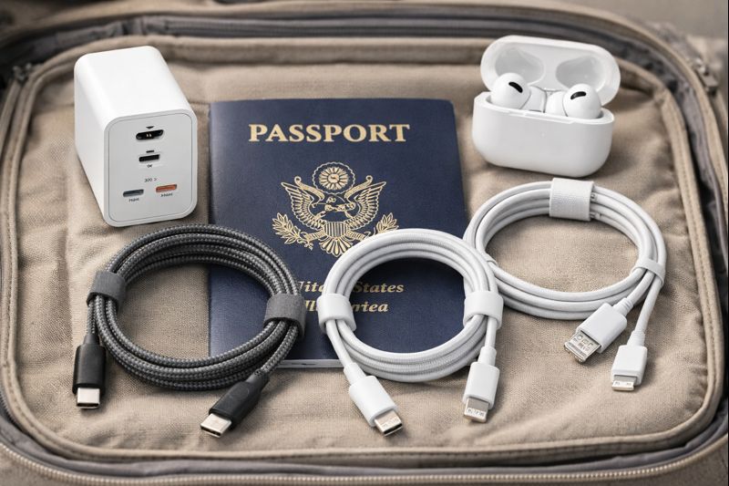 - All you need is a single cable for travel: Buy a high-quality USB-C cable and a multi-port USB-C PD charger.